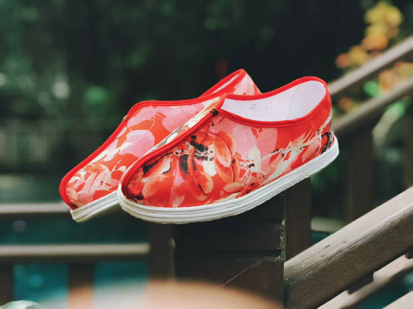 千层底手工布鞋洗涤与保养: (1)刷鞋时切不可将鞋浸泡在水里,应蘸水轻轻刷去污物并将鞋底朝上晾干(洗净用白色纸巾包裹住),切不可曝晒。 (2)如遇雨,踩泥水后,切不可摔拧,应及时刷净晾干。 (3)绣花鞋、缎面鞋不要用水刷面,穿着时不得与硬物磕碰、刮蹭。 (4)存放时,要将鞋置于阴凉通风处,切勿受潮,凡纯毛面料、毡绒内里鞋应放樟脑丸,以防虫蛀。 (5)千层底布鞋洗涤后常会因缩水而紧脚,因此在洗涤后,在鞋内放置鞋撑,晾干后的鞋就不会有鞋面变形的现象,也避免了压迫脚趾的感觉。