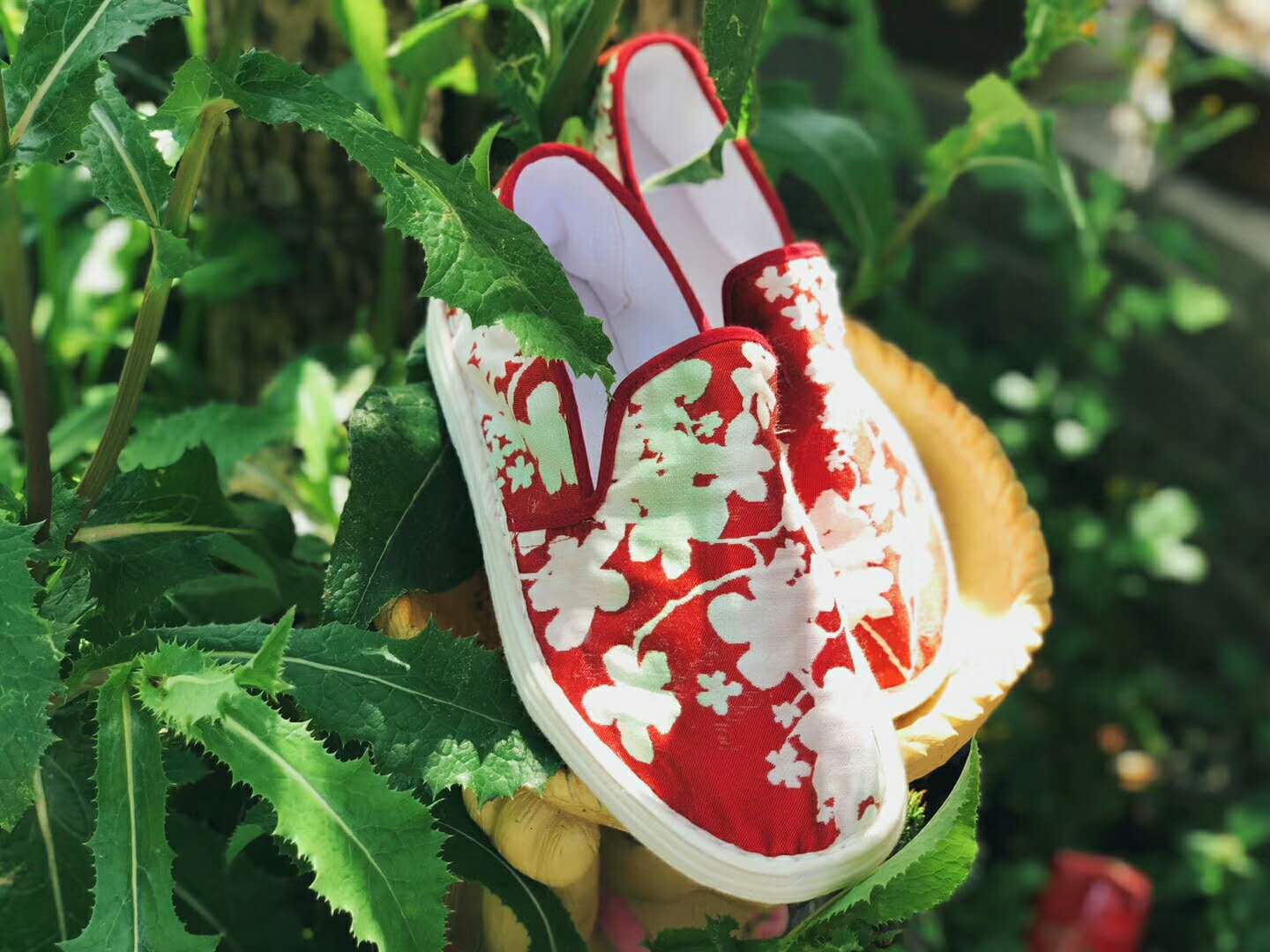 千层底手工布鞋洗涤与保养: (1)刷鞋时切不可将鞋浸泡在水里,应蘸水轻轻刷去污物并将鞋底朝上晾干(洗净用白色纸巾包裹住),切不可曝晒。 (2)如遇雨,踩泥水后,切不可摔拧,应及时刷净晾干。 (3)绣花鞋、缎面鞋不要用水刷面,穿着时不得与硬物磕碰、刮蹭。 (4)存放时,要将鞋置于阴凉通风处,切勿受潮,凡纯毛面料、毡绒内里鞋应放樟脑丸,以防虫蛀。 (5)千层底布鞋洗涤后常会因缩水而紧脚,因此在洗涤后,在鞋内放置鞋撑,晾干后的鞋就不会有鞋面变形的现象,也避免了压迫脚趾的感觉。