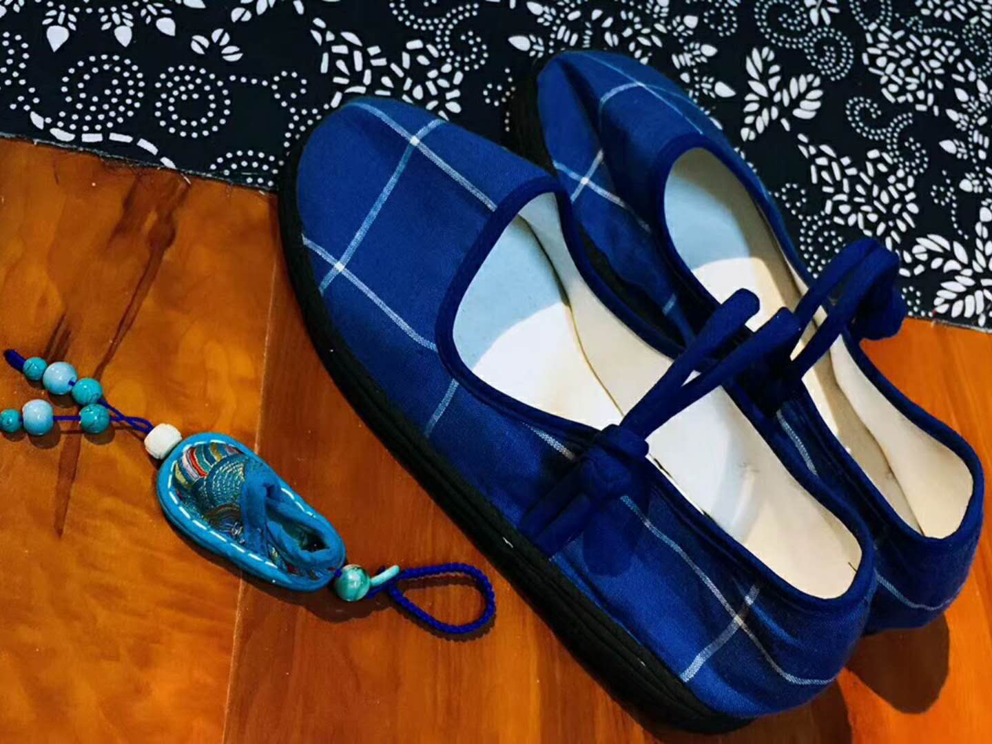 千层底手工布鞋洗涤与保养: (1)刷鞋时切不可将鞋浸泡在水里,应蘸水轻轻刷去污物并将鞋底朝上晾干(洗净用白色纸巾包裹住),切不可曝晒。 (2)如遇雨,踩泥水后,切不可摔拧,应及时刷净晾干。 (3)绣花鞋、缎面鞋不要用水刷面,穿着时不得与硬物磕碰、刮蹭。 (4)存放时,要将鞋置于阴凉通风处,切勿受潮,凡纯毛面料、毡绒内里鞋应放樟脑丸,以防虫蛀。 (5)千层底布鞋洗涤后常会因缩水而紧脚,因此在洗涤后,在鞋内放置鞋撑,晾干后的鞋就不会有鞋面变形的现象,也避免了压迫脚趾的感觉。