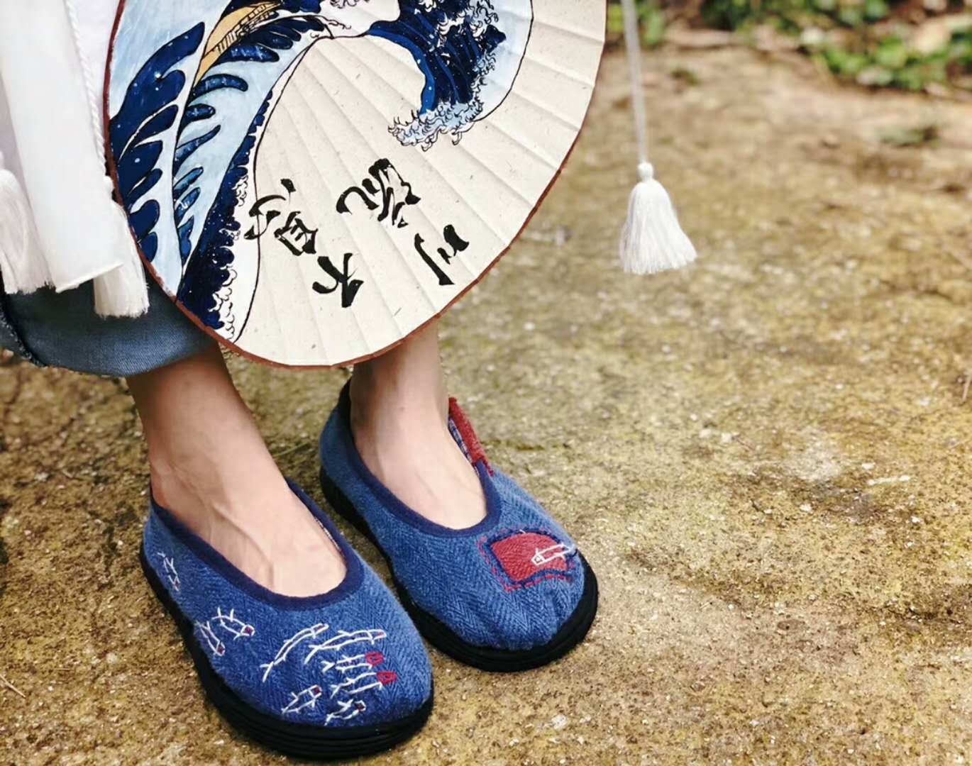(5)千层底布鞋洗涤后常会因缩水而紧脚,因此在洗涤后,在鞋内放置鞋撑,晾干后的鞋就不会有鞋面变形的现象,也避免了压迫脚趾的感觉。